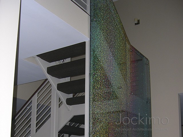 Client: Private Residence - CAGlass: HologramGlass™ Hyperplaid designOur Jockimo HologramGlass™ Sparkles design glass is utilized as a wall in this high end residence in CA.